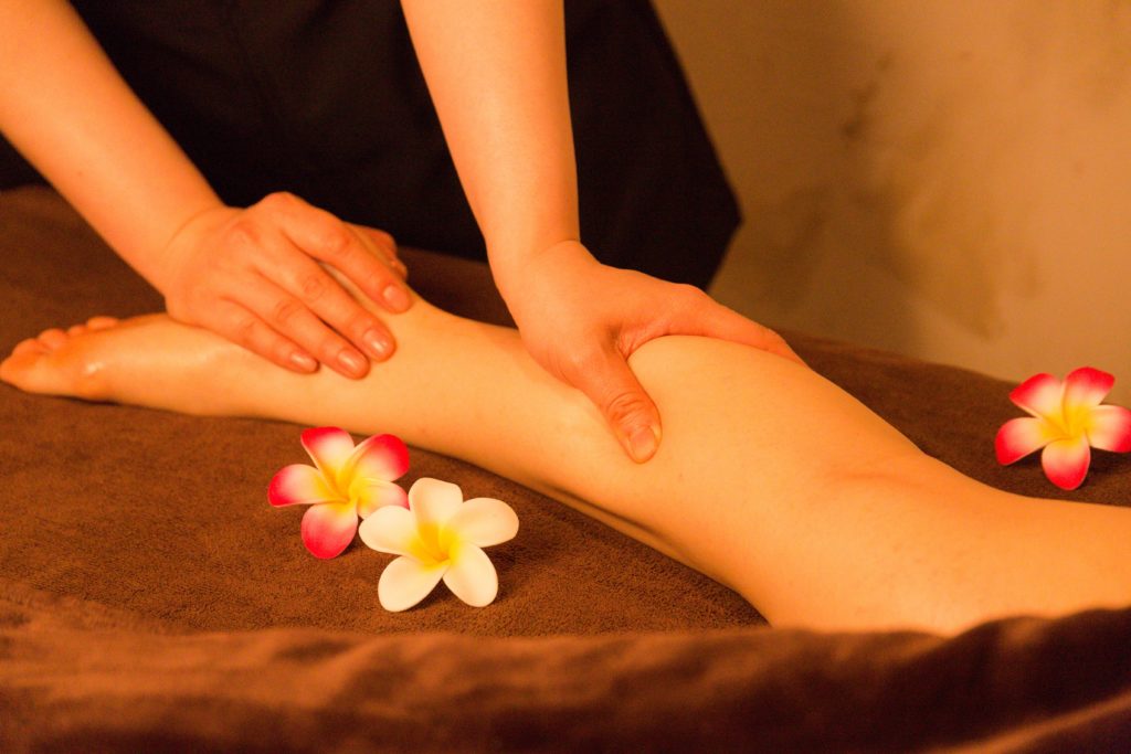 ★膝から下のマッサージでは、足首からふくらはぎ、膝裏にかけて丁寧に流していきます。足首周りは関節を支える小さな筋肉が集まっているため、ここを緩めることで可動域が広がりやすくなります。ふくらはぎは「第二の心臓」とも呼ばれるほど重要な部位で、血液を心臓へ押し戻すポンプのような役割を担っています。オイルを使ってふくらはぎを下から上へ流すことで、むくみの軽減や冷えの買い残、疲労回復におおきな効果が期待できます。さらに膝裏には大きなリンパ節があり、ここを優しく刺激することで斬新の巡りが良くなり、デトックス効果にもつながります。